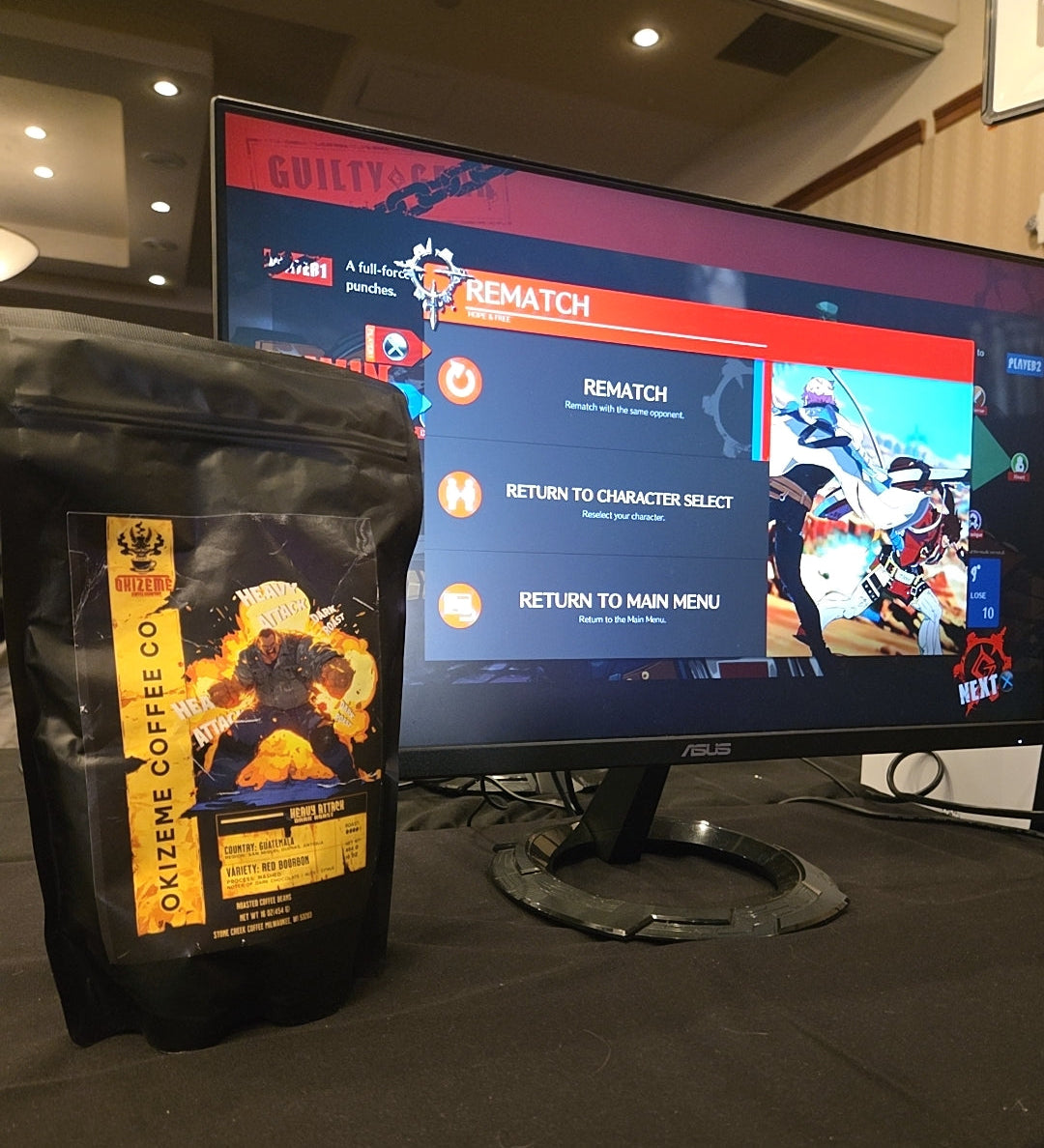 "Improve your wake up options with Okizeme Coffee Company, a joke of a tagline I made to a friend after getting bodied in the middle of the night, is now the tag line of my company dedicated to making the Fighting Game Community and your morning kitchen better places. I want to bring a good sustainable product to help support the FGC in whatever ways we as a company can do to expand this awesome community. Whether you are a TO or a casual fighting game fan, we hope to be there to support the future of the FGC. Now go hit the lab, we all need it, and maybe grab a bag or two of coffee to help improve those wake up options both in the game and out.